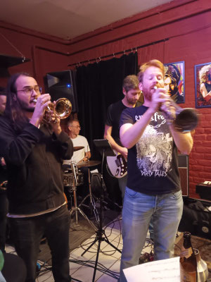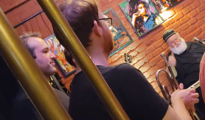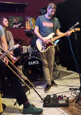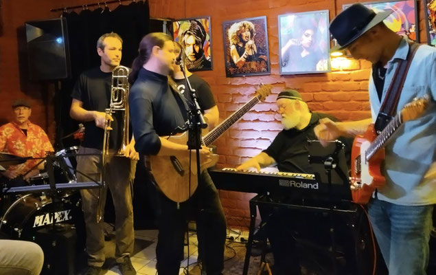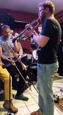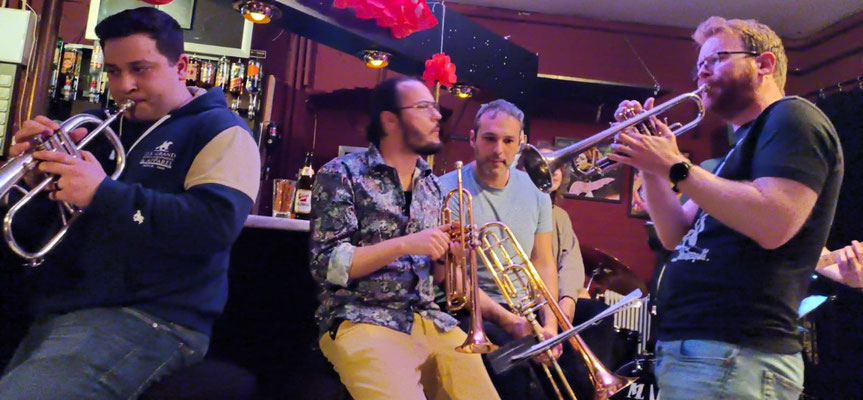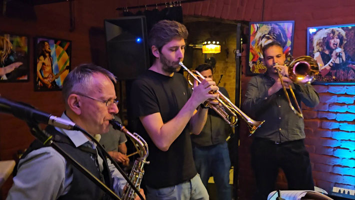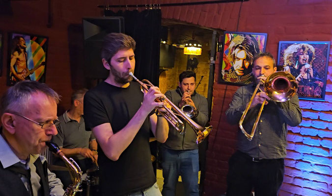 Very nice session meet up with Patrick Brantner (git) and his Brass Banda: Martin Brandstetter (tp), Jo Gschweidl (tp&voc), Refik Mansuroglu (flh), Tümay Capraz (tmb) featuring Sarah Trepte (voc) as well as Martinus Bassus (b), Sebastian Schmid (git) Adam Arling (b) Hari Kreuzer (dr), Nico Tanzarella (git), Joe Schirl (b), organized by Jo Leupold (keys&voc).