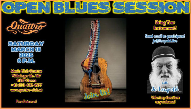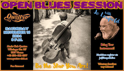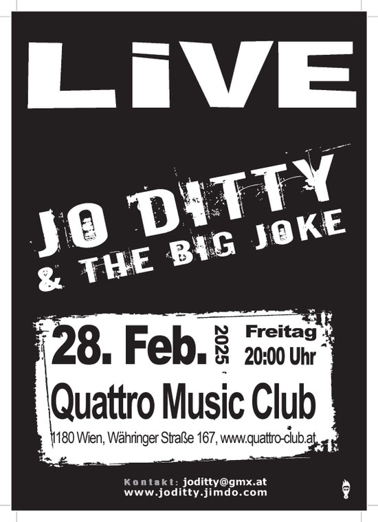 The Bluesband "Jo Ditty & The Big Joke" from the southern region of Lower Austria is very well known joy of playing. Their performances are emotional and fascinating musical experience. With: Jo Ditty (voc & git), Rainer Scherz (keys), Harry Hofer (bass), Franz Seiser (git) and Fredl Kager (drums). Link: joditty.jimdofree.com